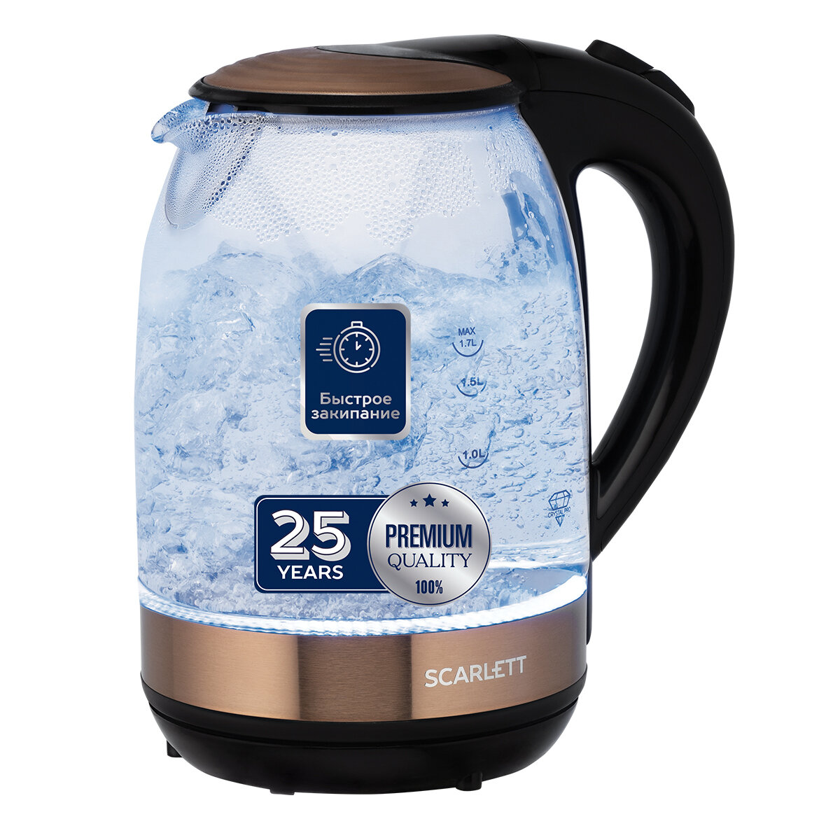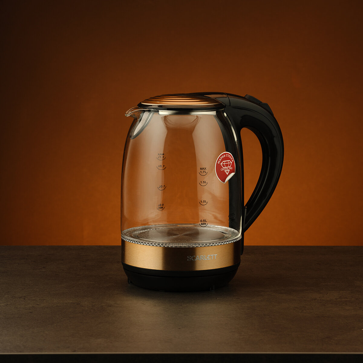 Чайник электрический SCARLETT SC-EK27G81, 2200Вт, 1.7л, стекло/бронза