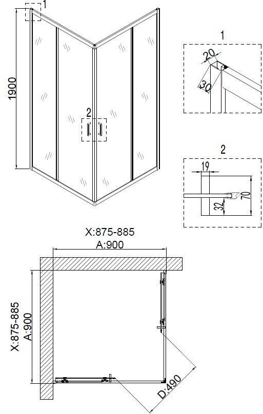 Душевое ограждение Niagara NG- 6608-08 (90*90*190) квадрат, двери раздвижные, 1 место