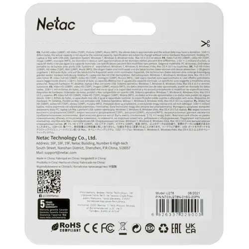16Gb Netac U278 metal USB 2.0 (nt03u278n-016g-20pn) Nt03u278n-016g-20pn