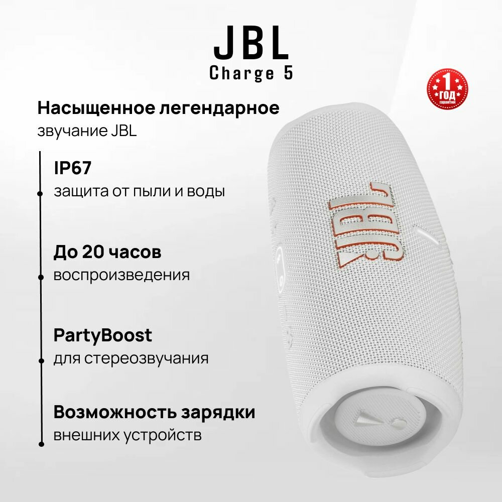 Портативная акустика JBL Charge 5, белый