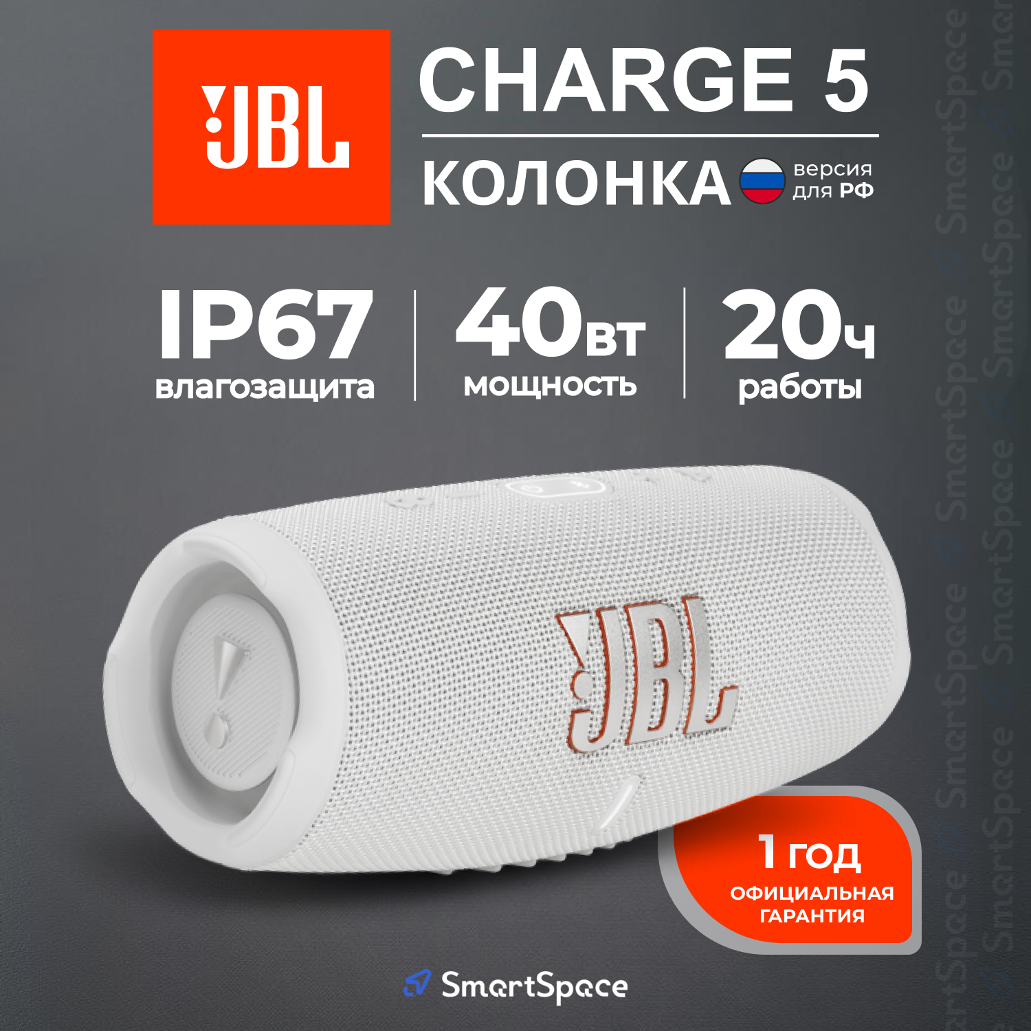 Купить Портативная акустика JBL Charge 5 RU, 40 Вт, белый