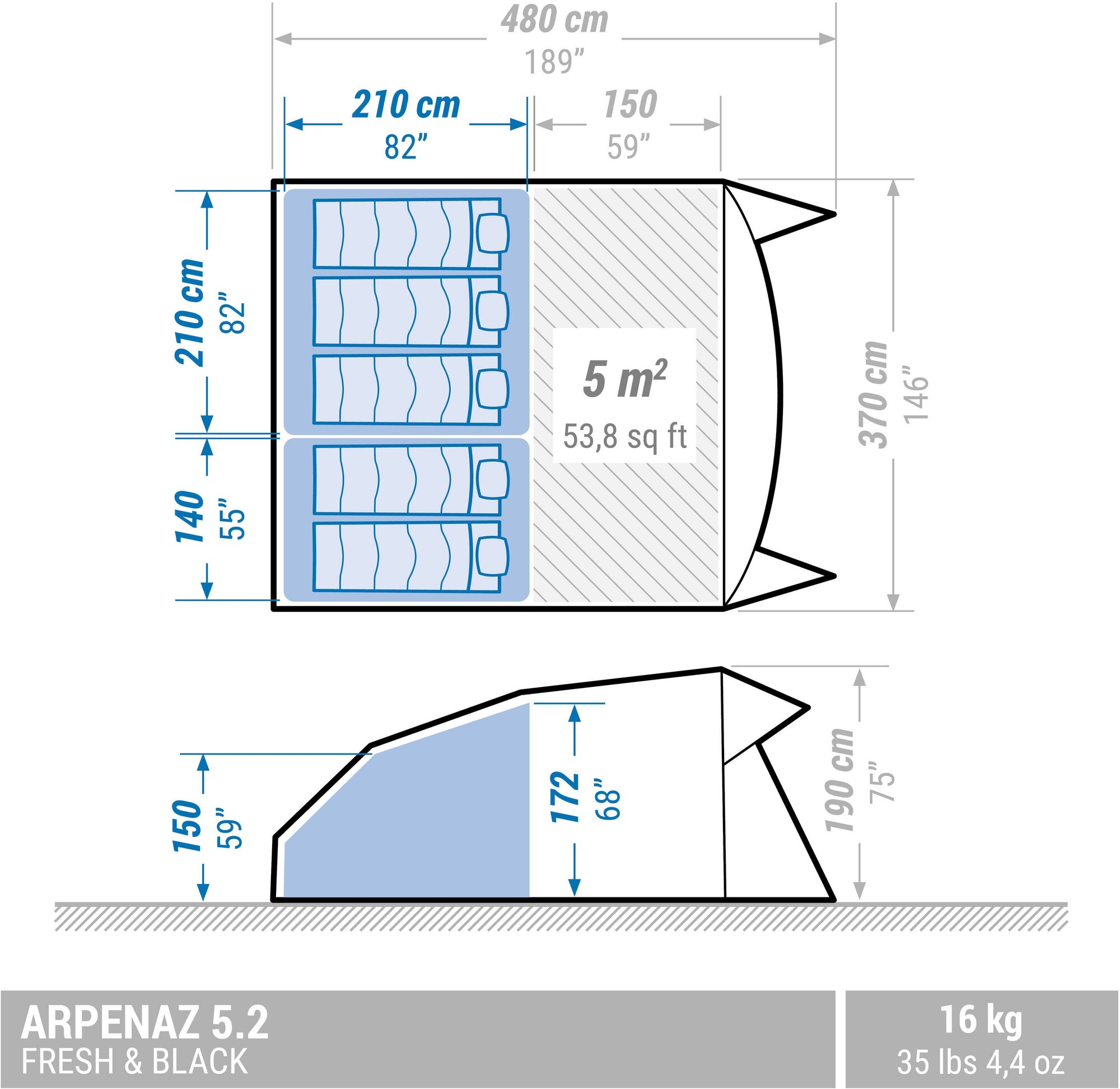 Купить Палатка кемпинговая пятиместная Decathlon Quechua Arpenaz 5.2 Fresh&Black, белый/синий