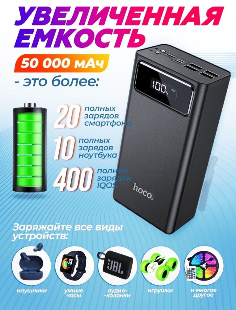 СохранитьПортативный аккумулятор Hoco J65B 50000mAh, черный, упаковка: коробка интересное: