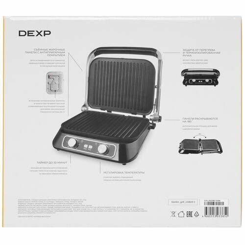 Гриль DEXP MGL-2000 [GC5005BB-CE] серебристый/черный, RU