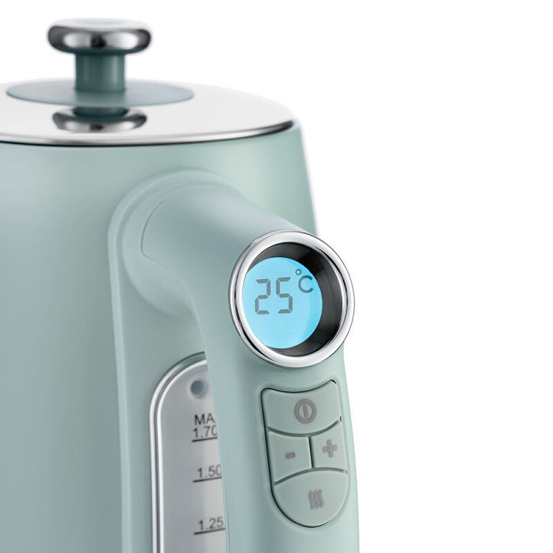 Чайник KITFORT КТ-6120-1, 1.7 л, 2200 Вт, закрытый нагревательный элемент, LED-дисплей, терморегулятор, сталь, мятный