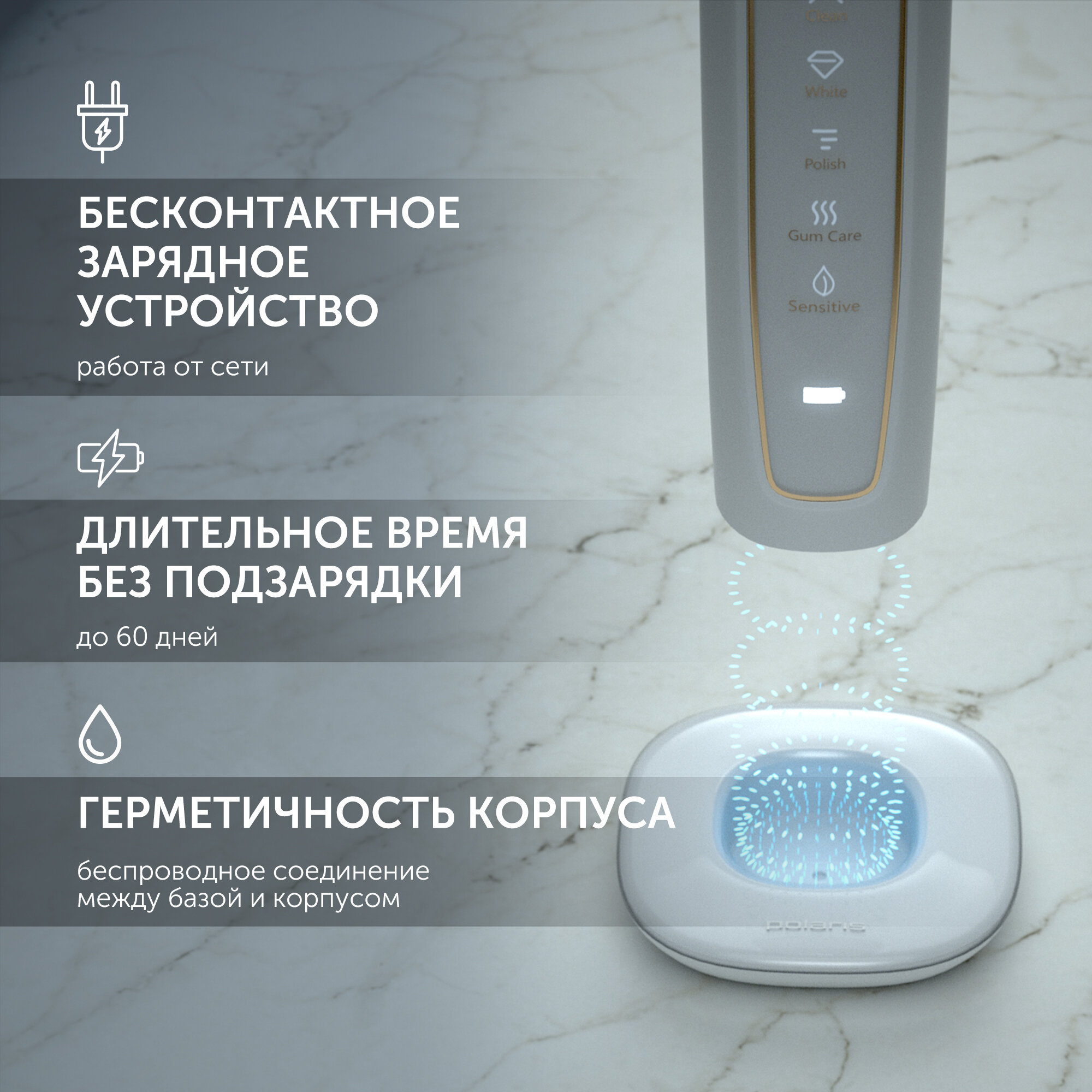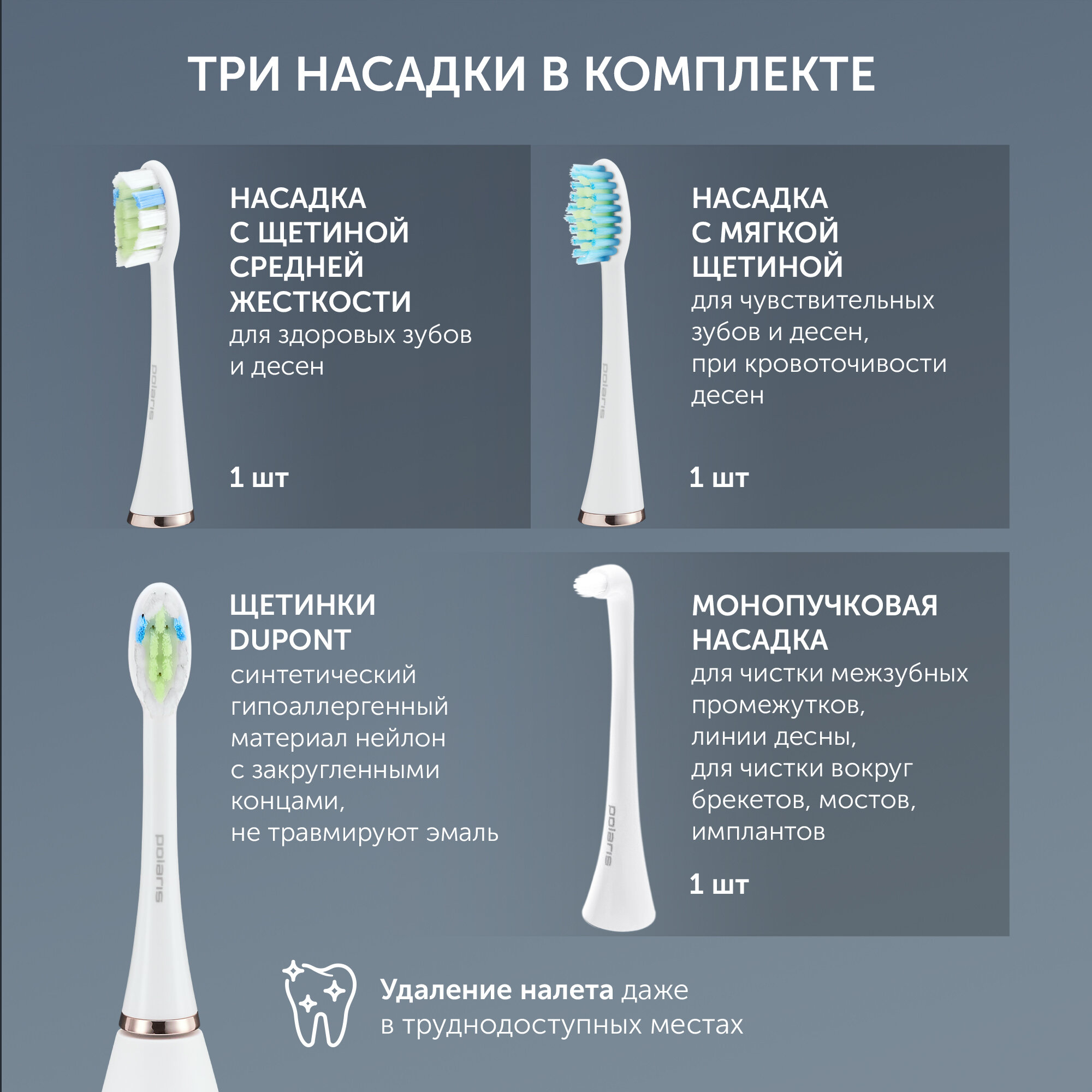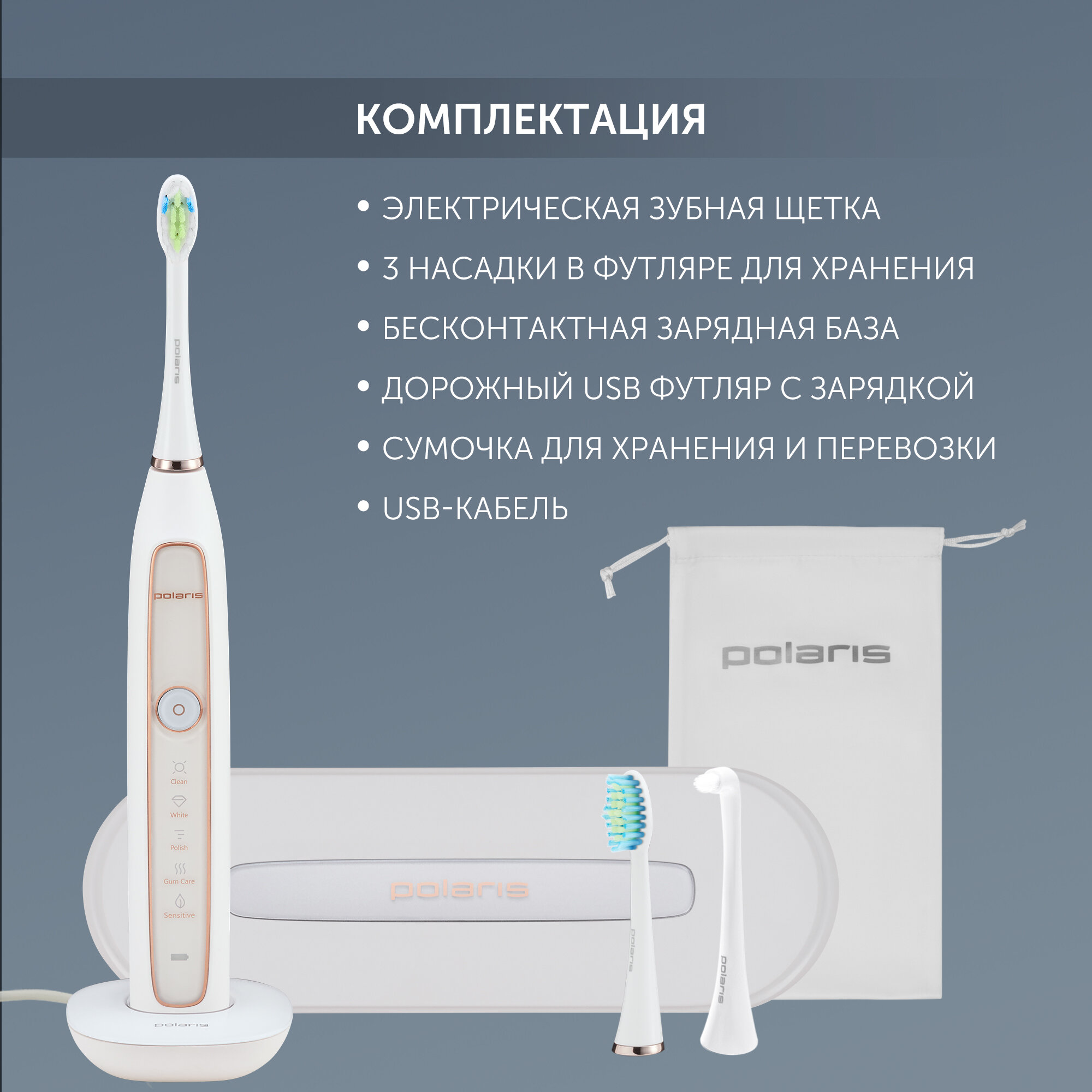 Электрическая зубная щетка Polaris PETB 0101 TC, с дополнительными насадками, белая