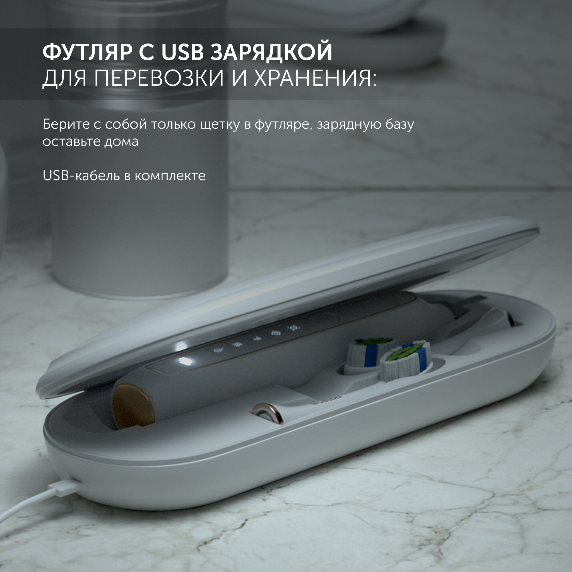 | Плюсы: | Аккуратная сборка, количество режимов чистки, 3 щетки в комплекте и чехол для перевозки с возможностью зарядки (дополнительный USB-шнур, подключаемый к чехлу) |