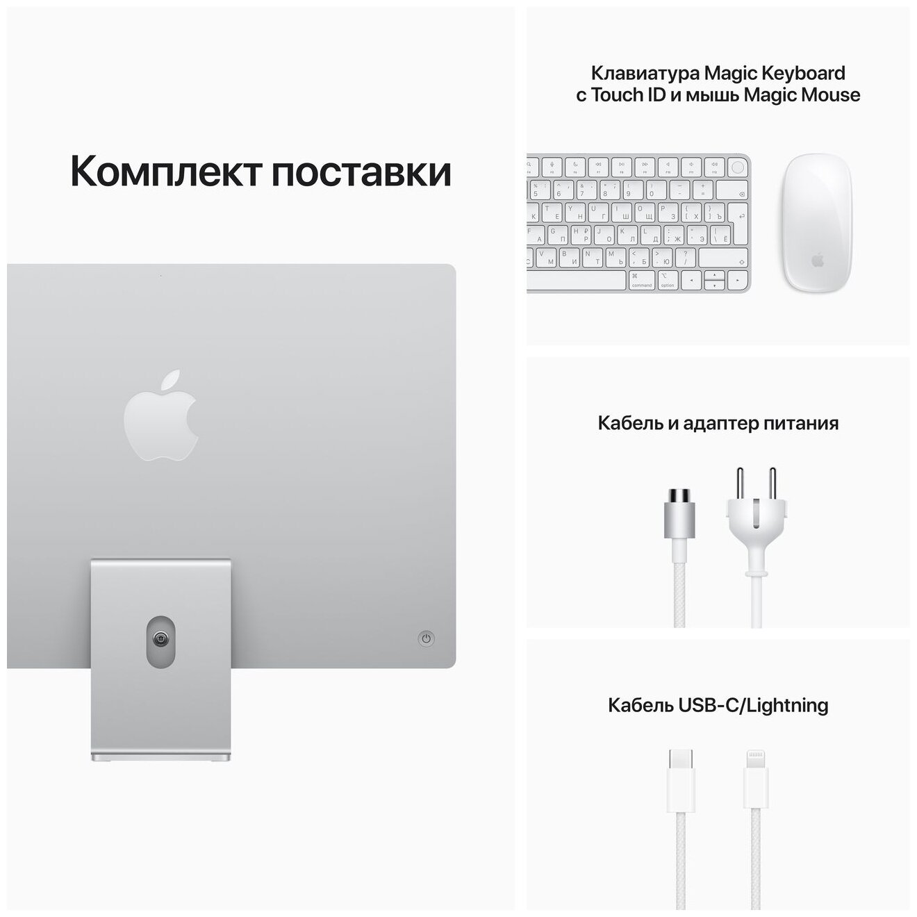 24" Моноблок Apple iMac 24" 2021 г. MGPD3, 4480x2520, Apple M1 2.064 ГГц, RAM 8 ГБ, SSD 512 ГБ, Apple M1 8-Core, MacOS, серебристый
