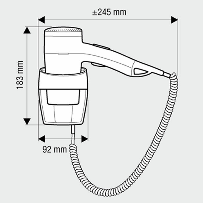 Купить Фен настенный Valera Hospitality Premium 1200 (533.04/038A), мощность 1200 Вт, тройная система защиты, безопасная кнопка включения/выключения, концентратор, настенный держатель