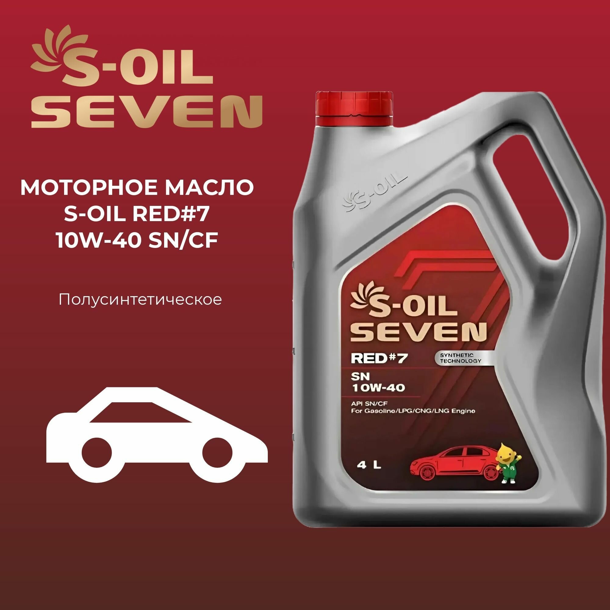 Купить Полусинтетическое моторное масло S-OIL SEVEN RED #7 SN 10W-40, 4 л
