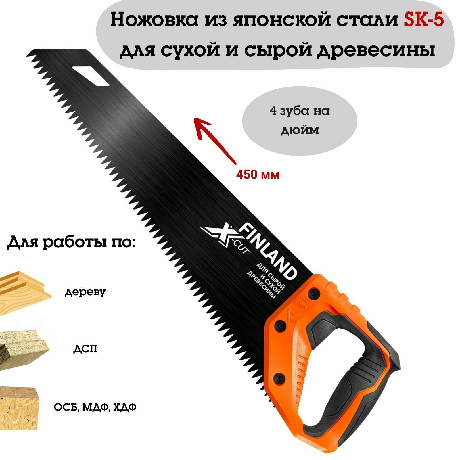 Ножовка FINLAND 1955, для сырого дерева, 450мм