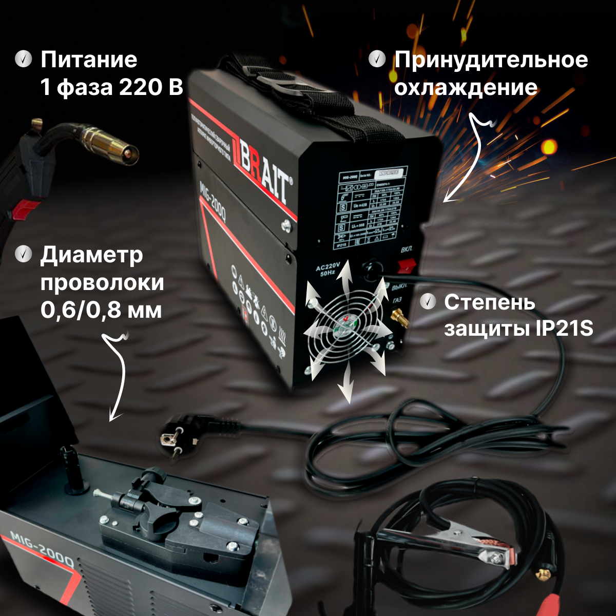 Сварочный Полуавтомат инверторного типа BRAIT MIG-200Q, MMA, MIG/MAG