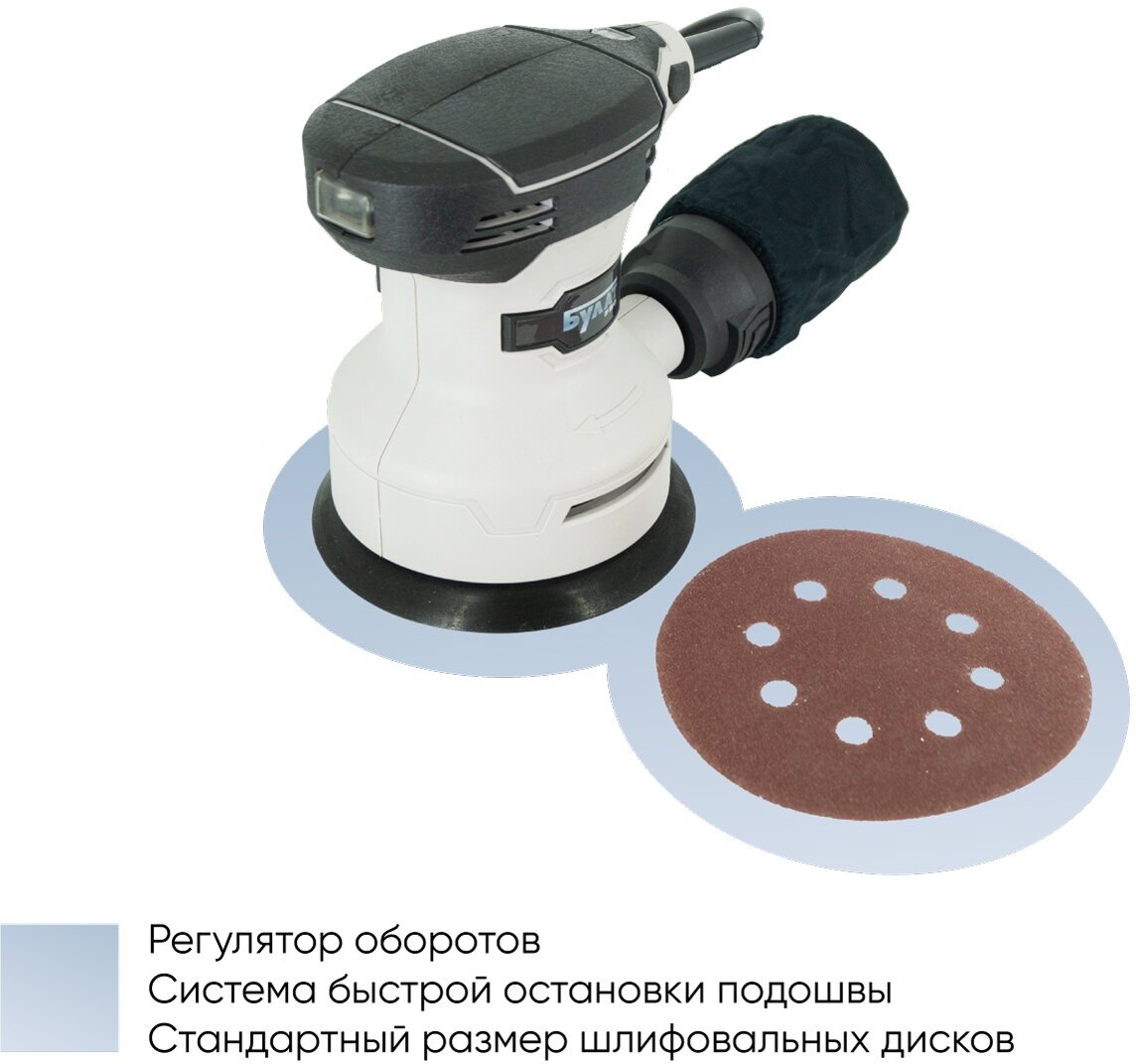 Шлифмашина эксцентриковая / шлифовальная машина орбитальная ОР 550/125 булат, 550 Вт, 125 мм, 0-12000 об/мин интересное: