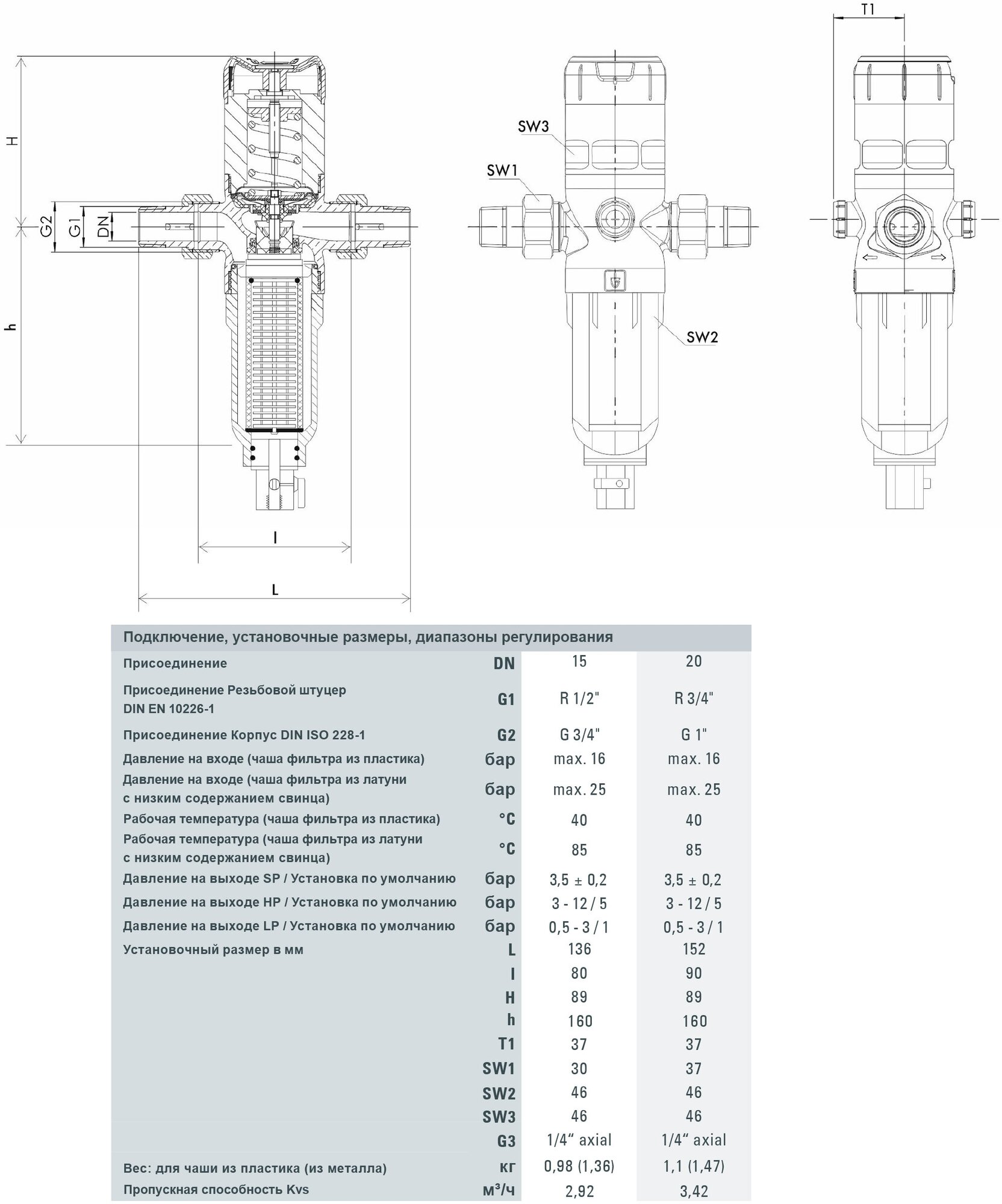 Сетчатый фильтр с редуктором давления Goetze FD07-1/2H (SP) до 85 градусов для горячей воды