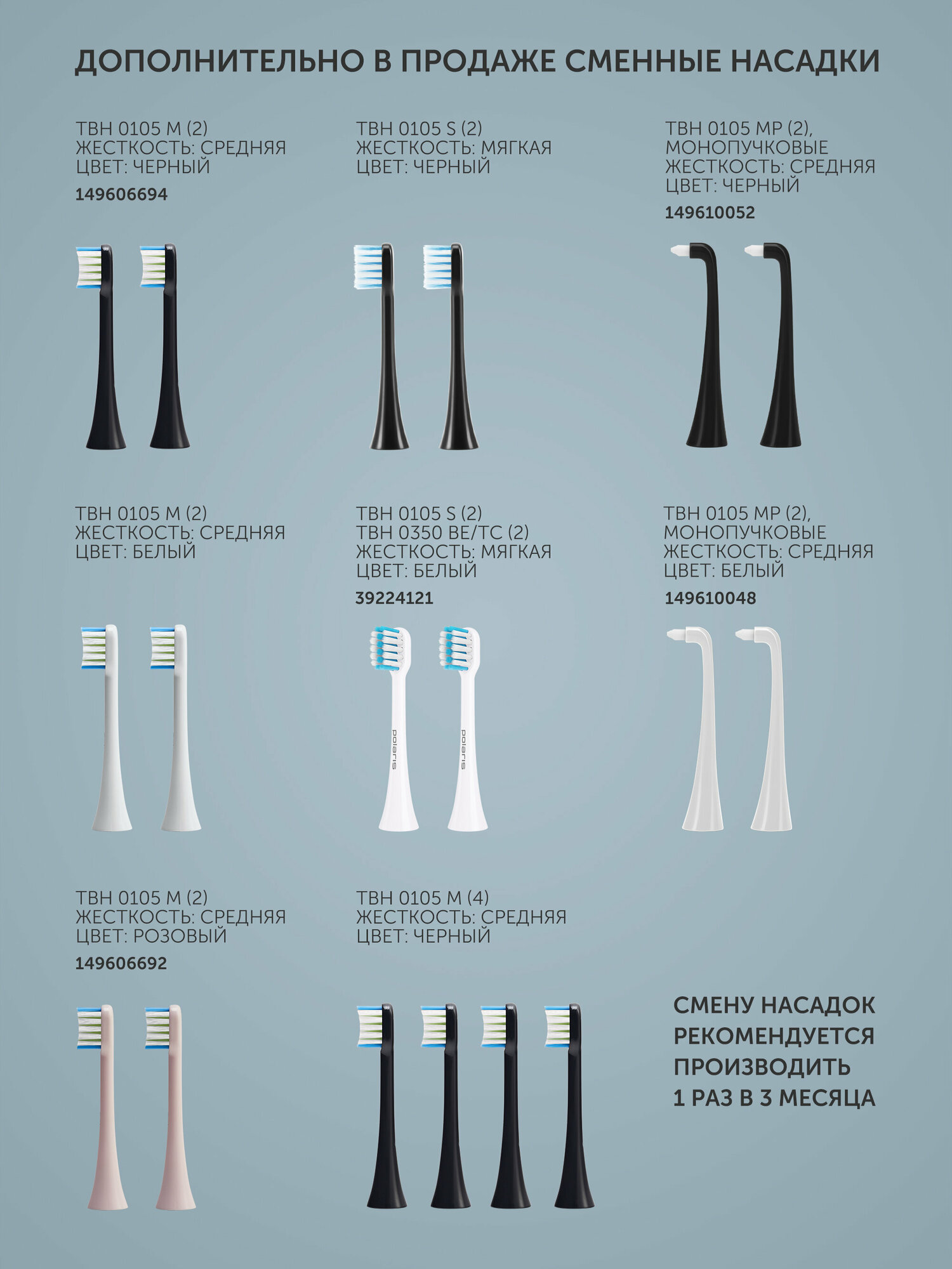 - сменные насадки меняю не часто, последнюю из набора поставил через полгода после покупки - 5 режимов, основной сенсетив, остальные использую 1-2 раза в месяц |