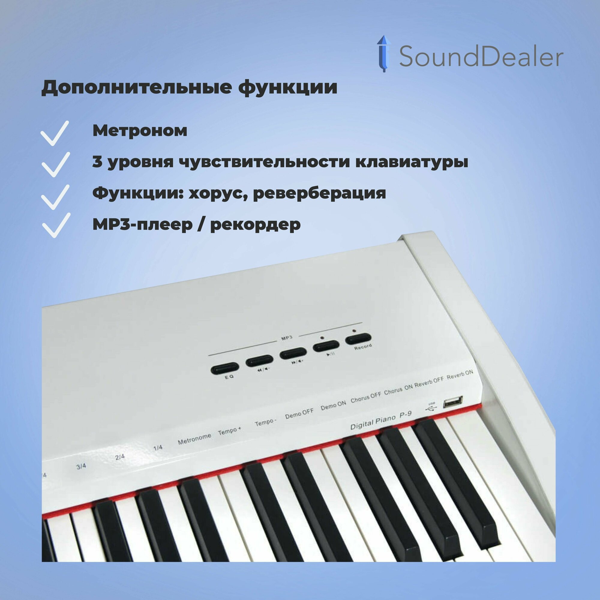 Пианино цифровое Sai Piano P-9BT-WH, 138 тембров, Bluetooth, MP3
