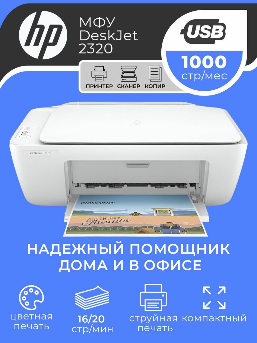 МФУ струйный цветной DESKJET 2320 (7WN42B) печать и сканер интересное: