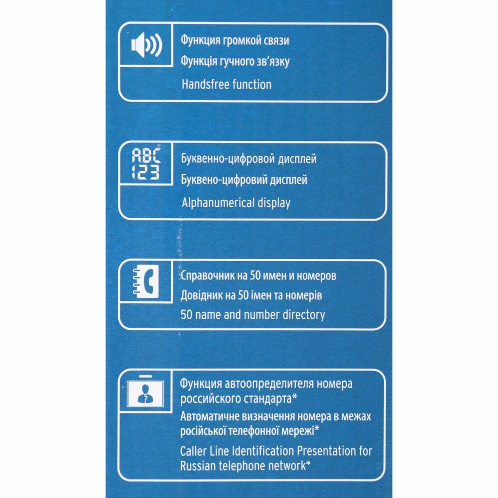 | Объем встроенной телефонной книги | 50 номеров |