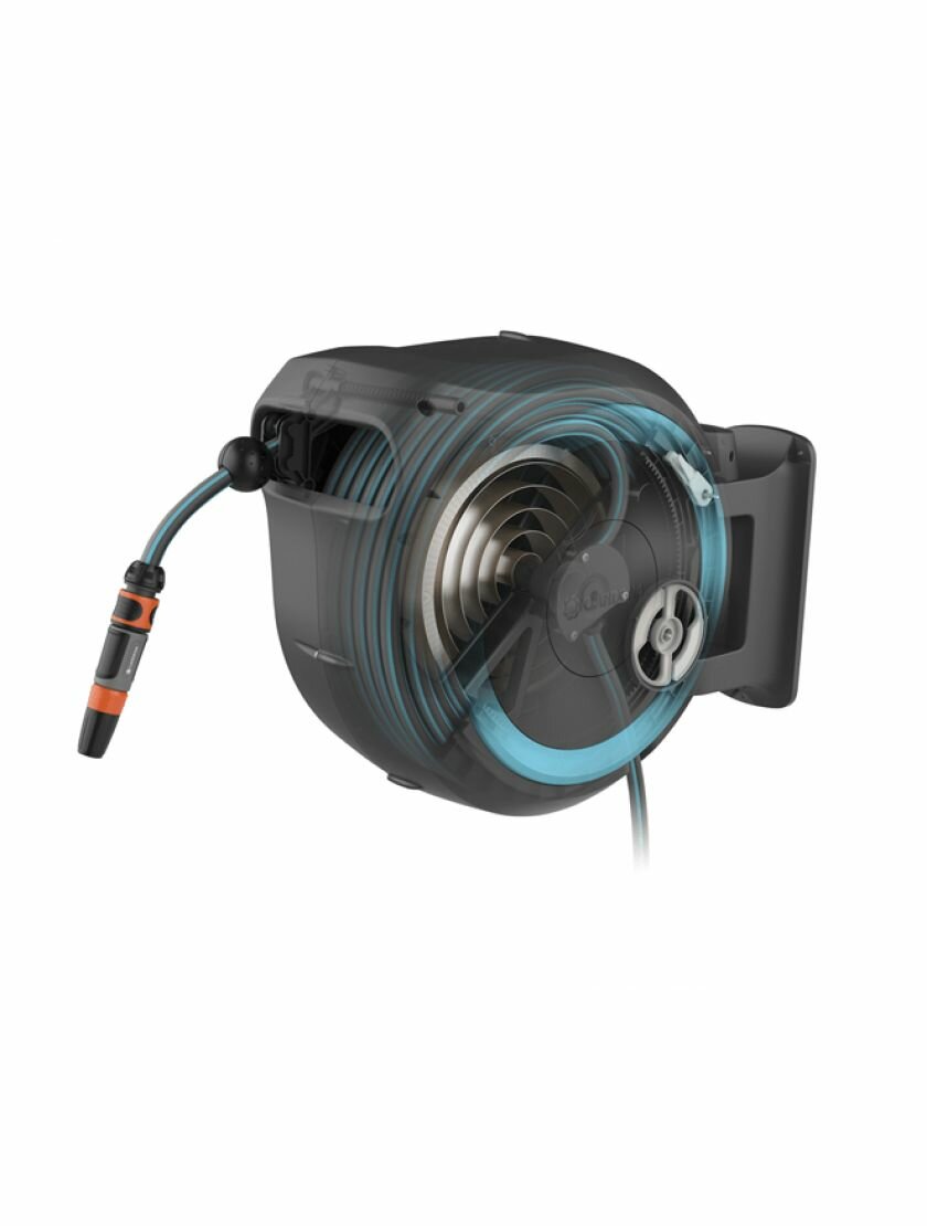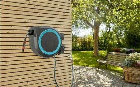 Катушка со шлангом настенная автоматическая Gardena RollUp L 30 м голубой интересное: