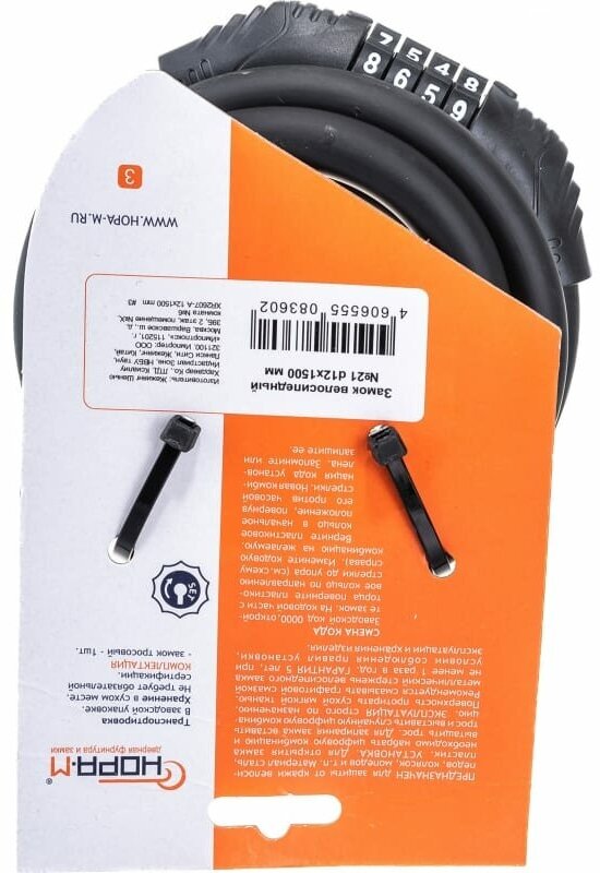 Купить Замок велосипедный кодовый нора-м №21 размер ф12х1500мм черный (18296)