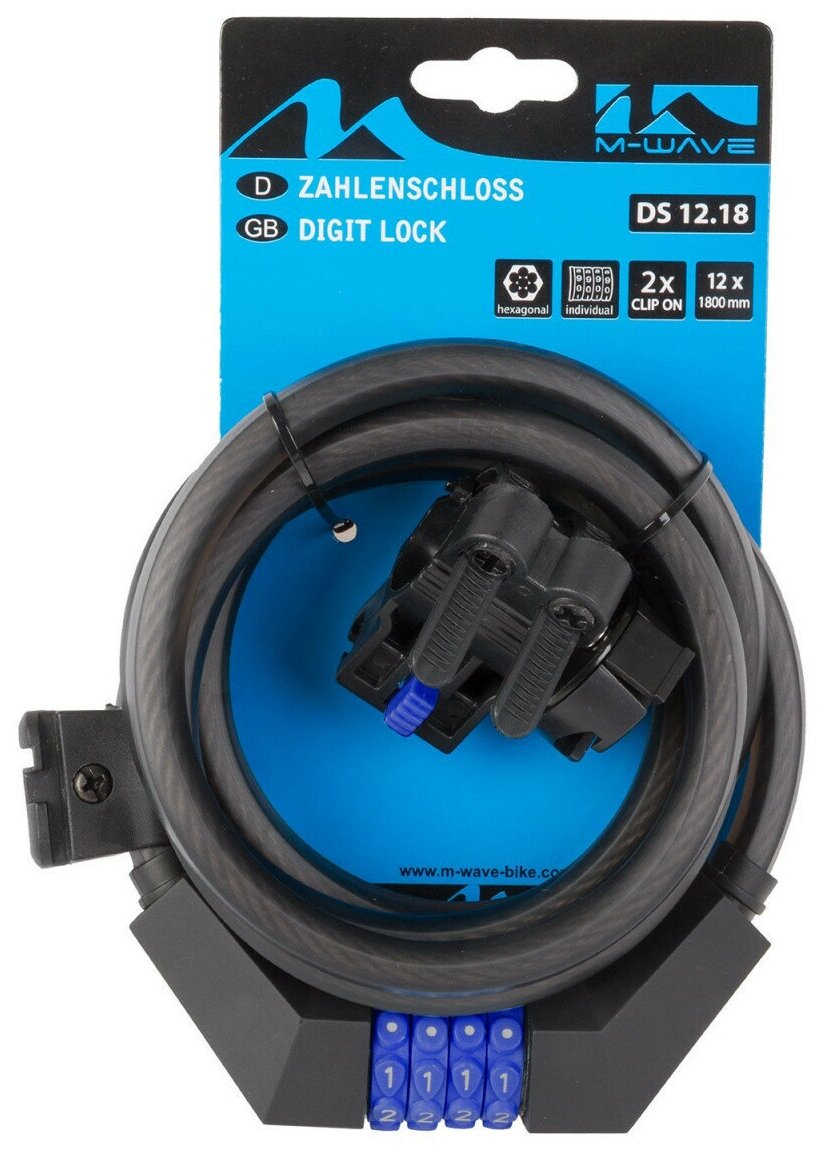 Купить Замок велосипедный M-WAVE DS 12.18 тросовый, 12х1500мм