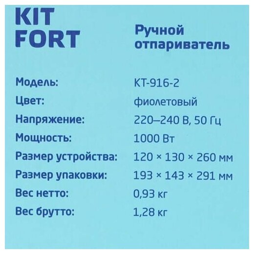 Kitfort Отпариватель ручной КТ-916-2 фиолетовый интересное: