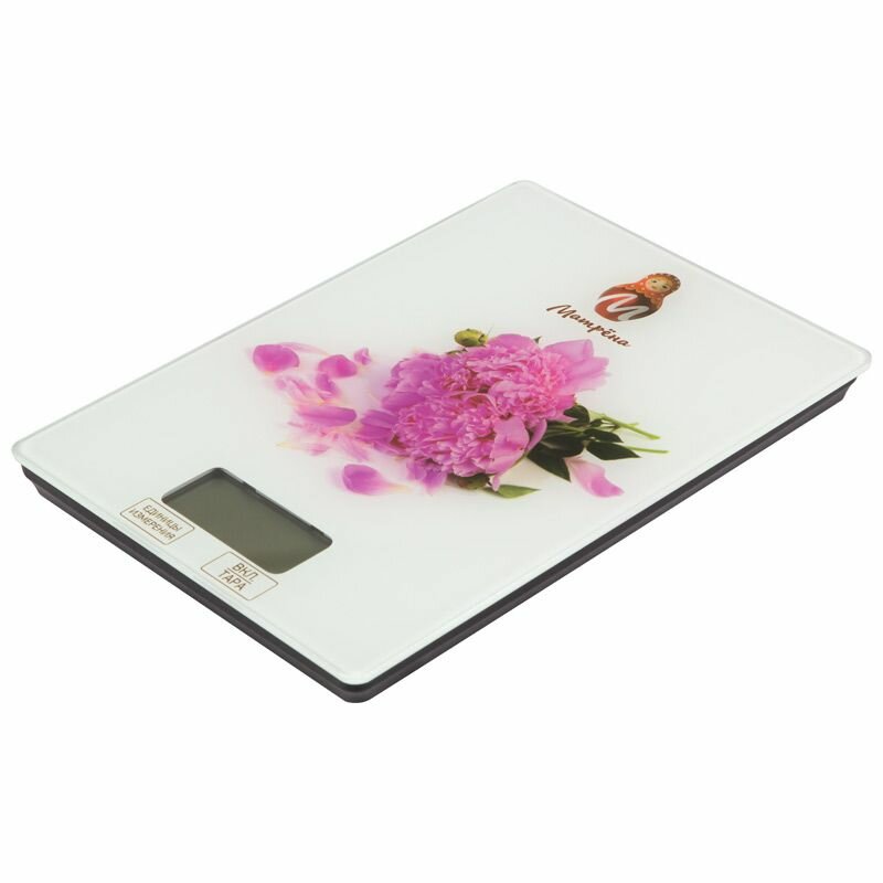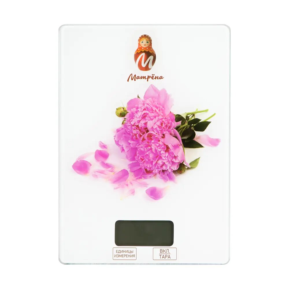 Весы кухон. эл. Матрена МА-037 (Пионы) до 7кг, дел 1гр, 15*21см (2*ААА в компл) 7158
