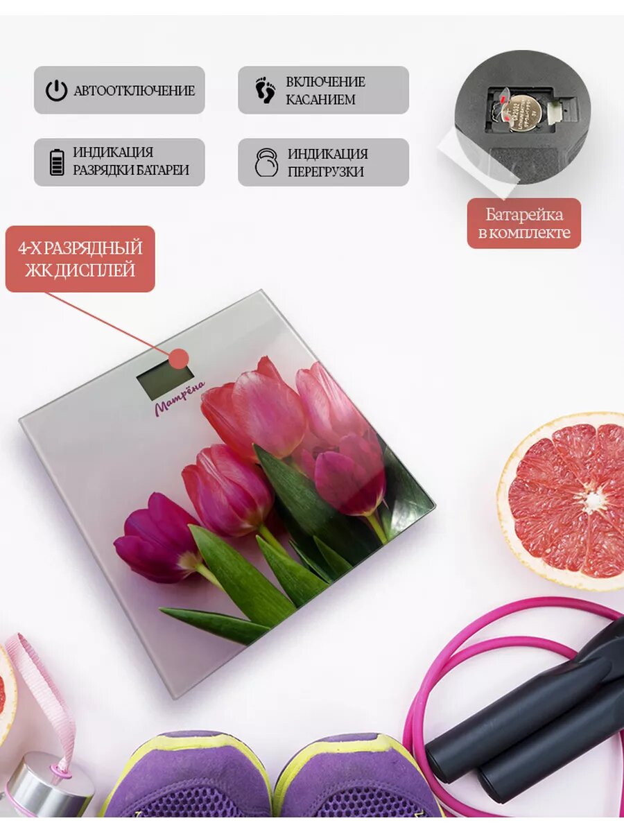 СохранитьВесы напольные электронные матрёна МА-090 тюльпаны (стеклянная поверхность, 180 кг) интересное: