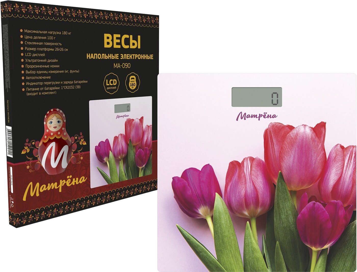 Купить Весы напольные электронные матрёна МА-090 тюльпаны (стеклянная поверхность, 180 кг)