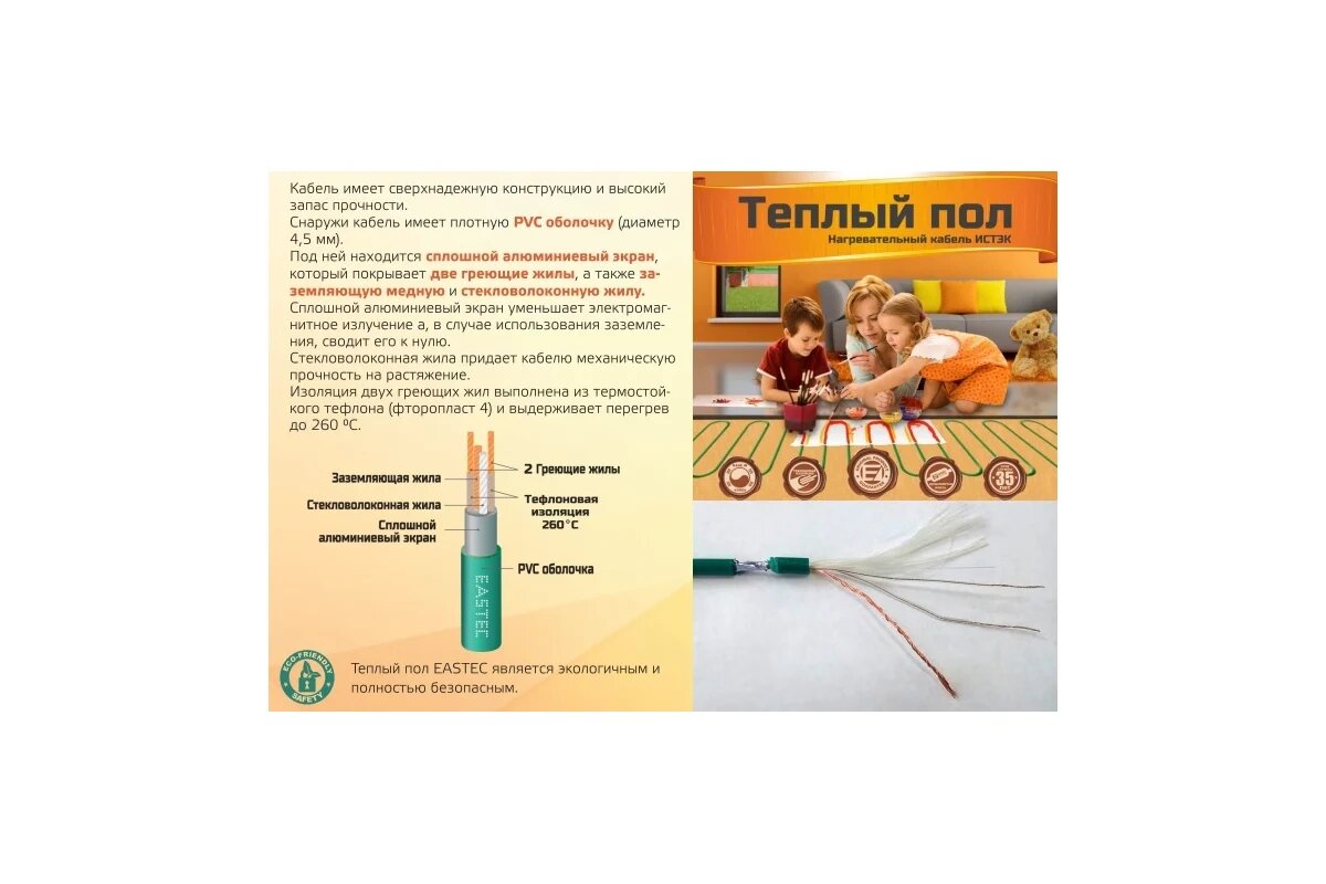 Нагревательный кабель EASTEC ECC-200Вт-10м (1,3-1,8) м2 для тёплого пола в стяжку