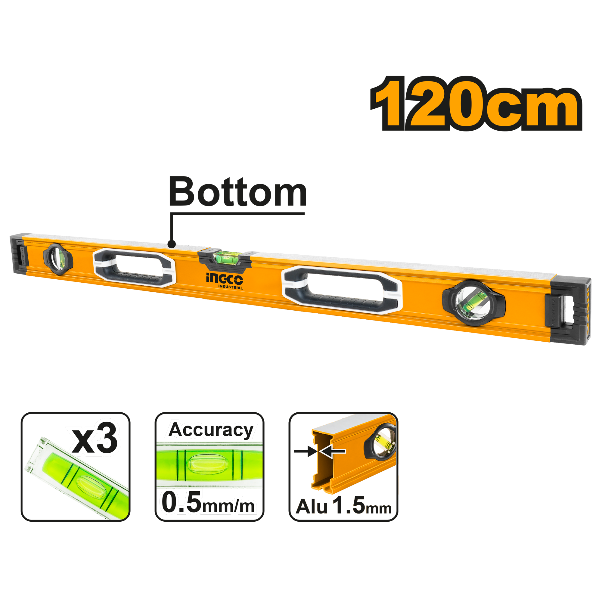 Строительный алюминиевый уровень INGCO HSL08120 INDUSTRIAL 120 см