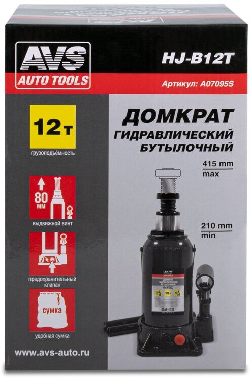 Ниже Вы можете прочитать отзывы на Домкрат автомобильный (бутылочный) гидравлический AVS HJ-B12T, 12 тонн, A07095S, ознакомится с подробными характеристиками, посмотреть интересные обзоры и фотографии на Домкрат автомобильный (бутылочный) гидравлический AVS HJ-B12T, 12 тонн, A07095S.