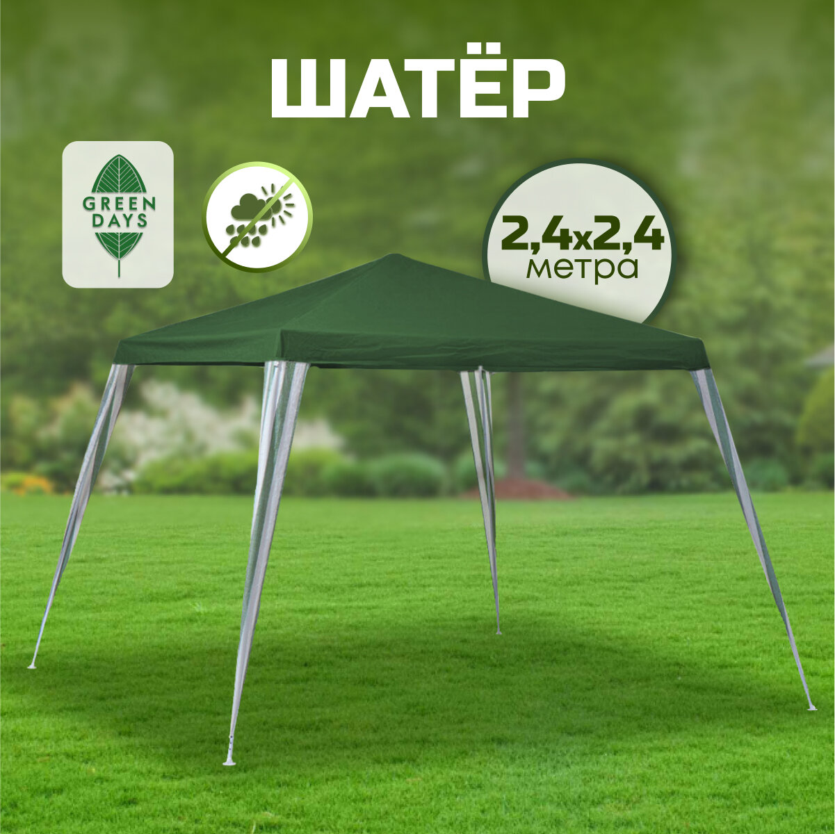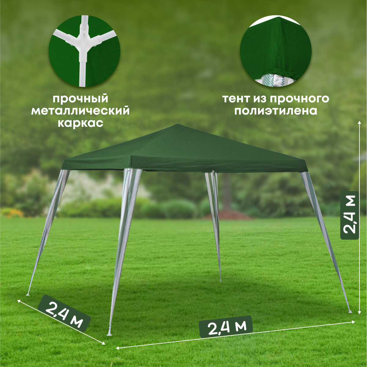 Шатер, 2.4х2.4х2.4 м, с толщиной трубы 0.3 мм, Green Days интересное: