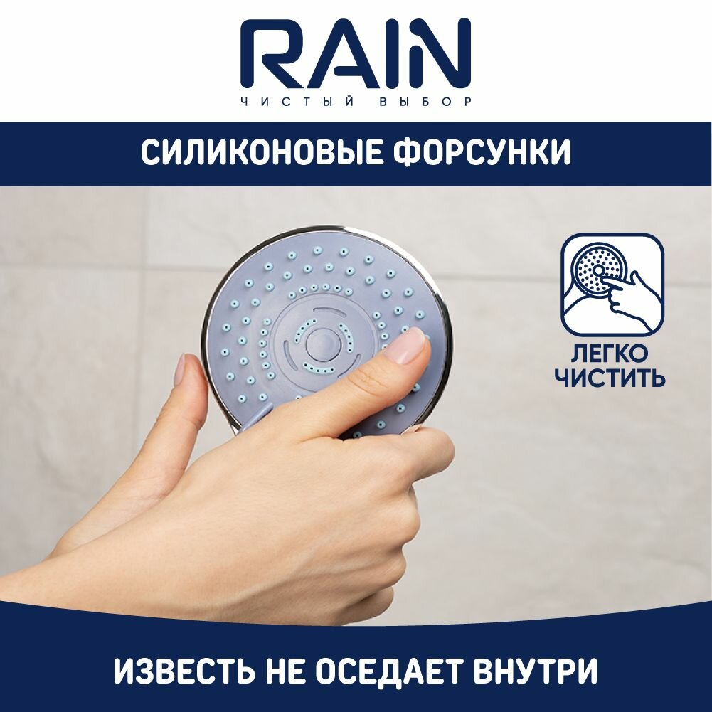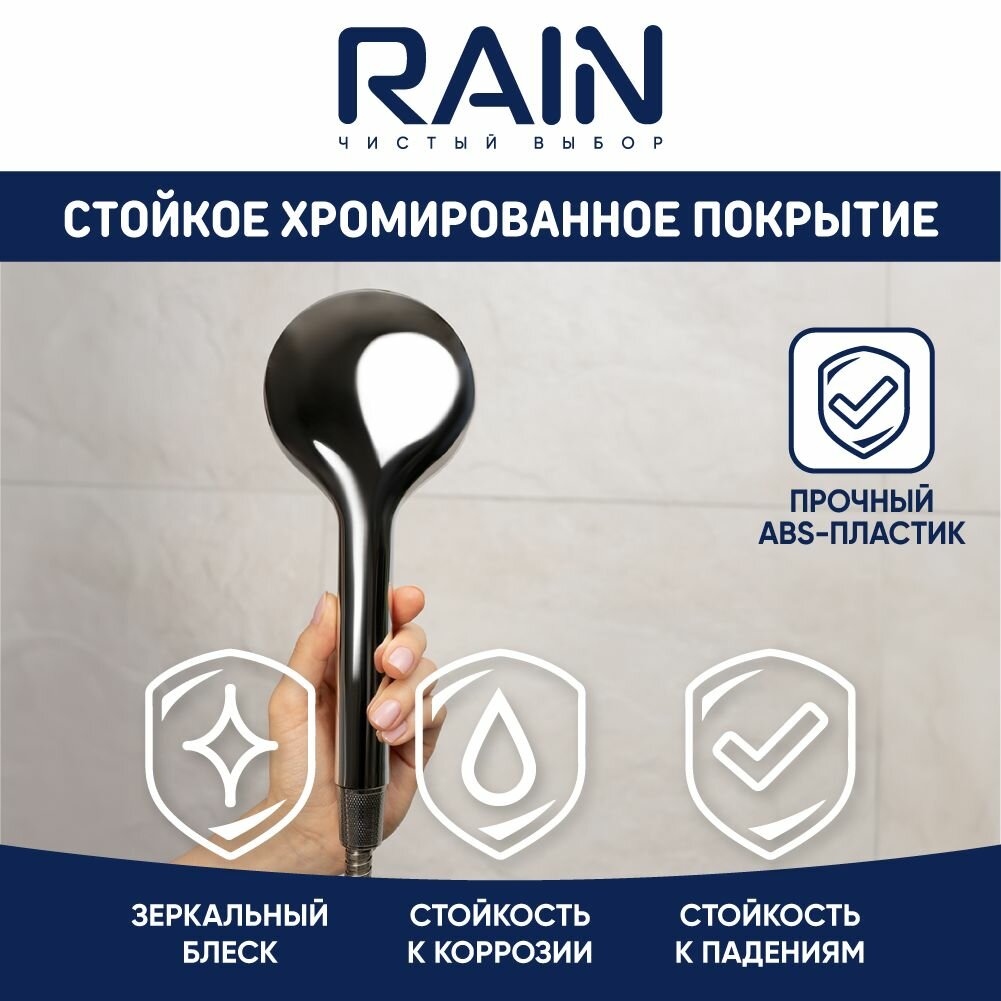 RAIN Набор для душа, лейка 95мм, 5 режимов, шланг 150см, держатель