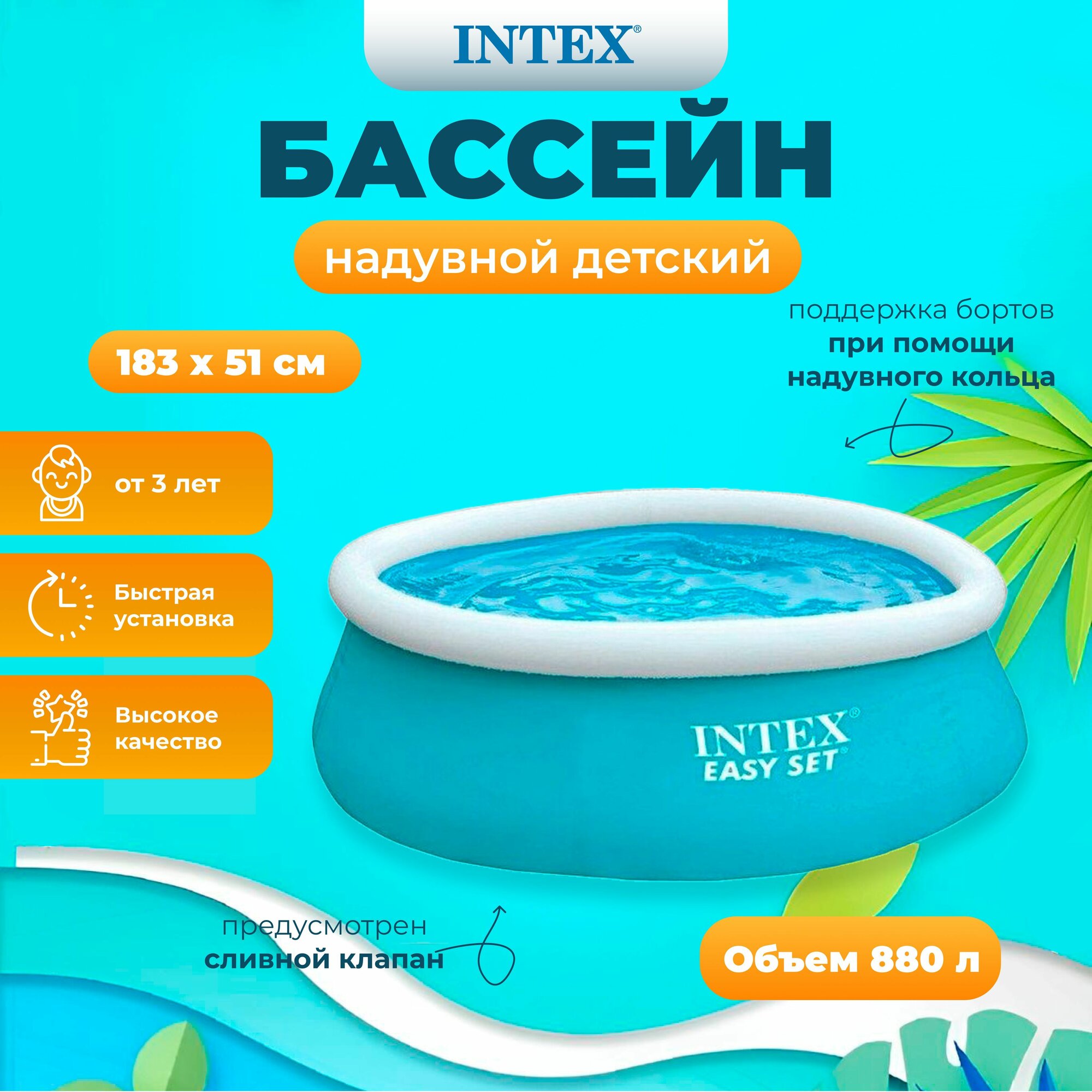 Бассейн Intex Easy Set 28101, надувной, с кольцом, голубой, 183x51 см