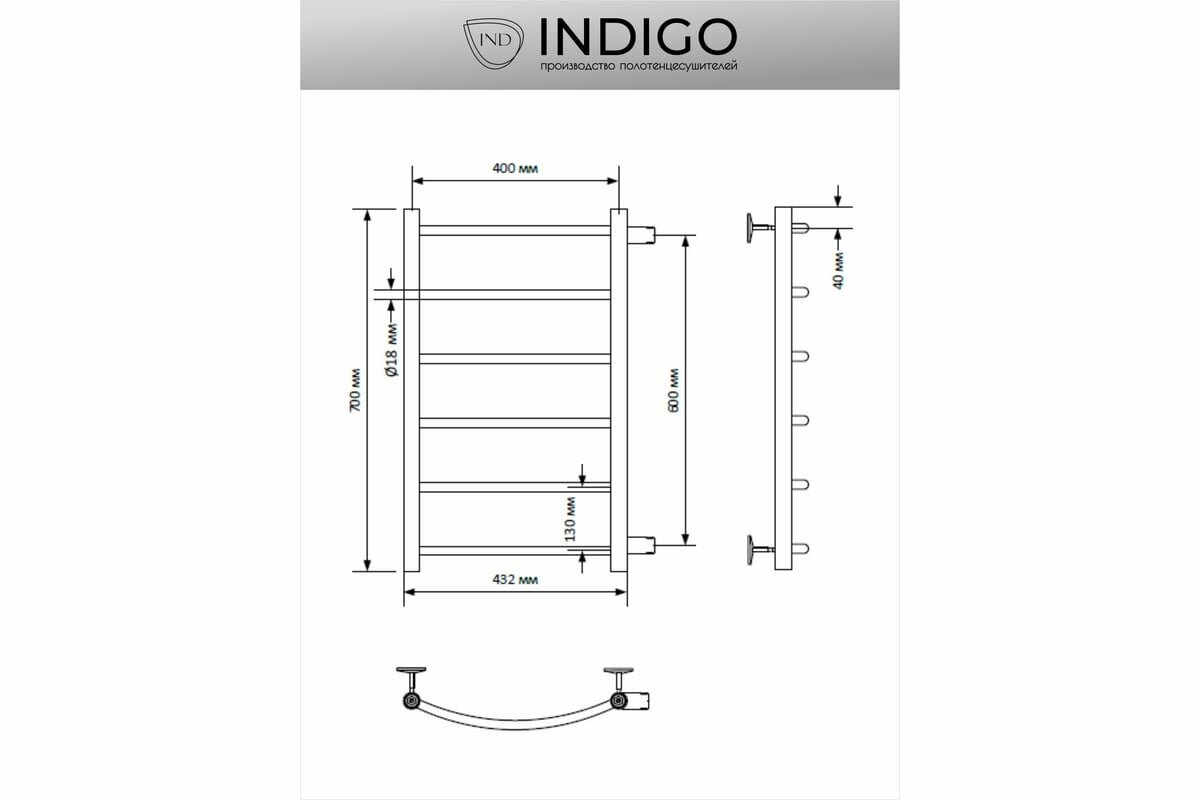 Полотенцесушитель водяной Indigo Arc 700х400, м/о 60 боковое подключение, хром