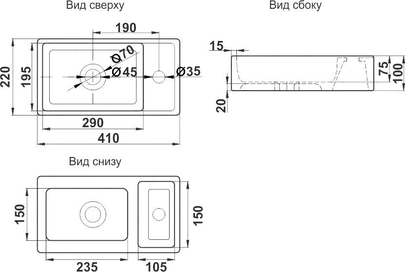 | Число отверстий под смеситель | 1 |