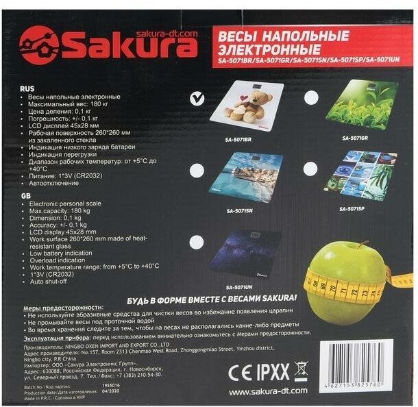 Весы напольные - электронные, Sakura SA-5071BR, до 180кг, цвет белый, 1 шт. интересное: