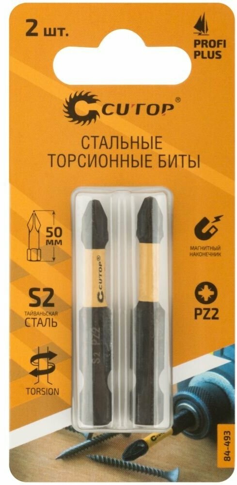 Набор торсионных бит Profi Plus 2 шт, PZ2, 50 мм CUTOP 84-493