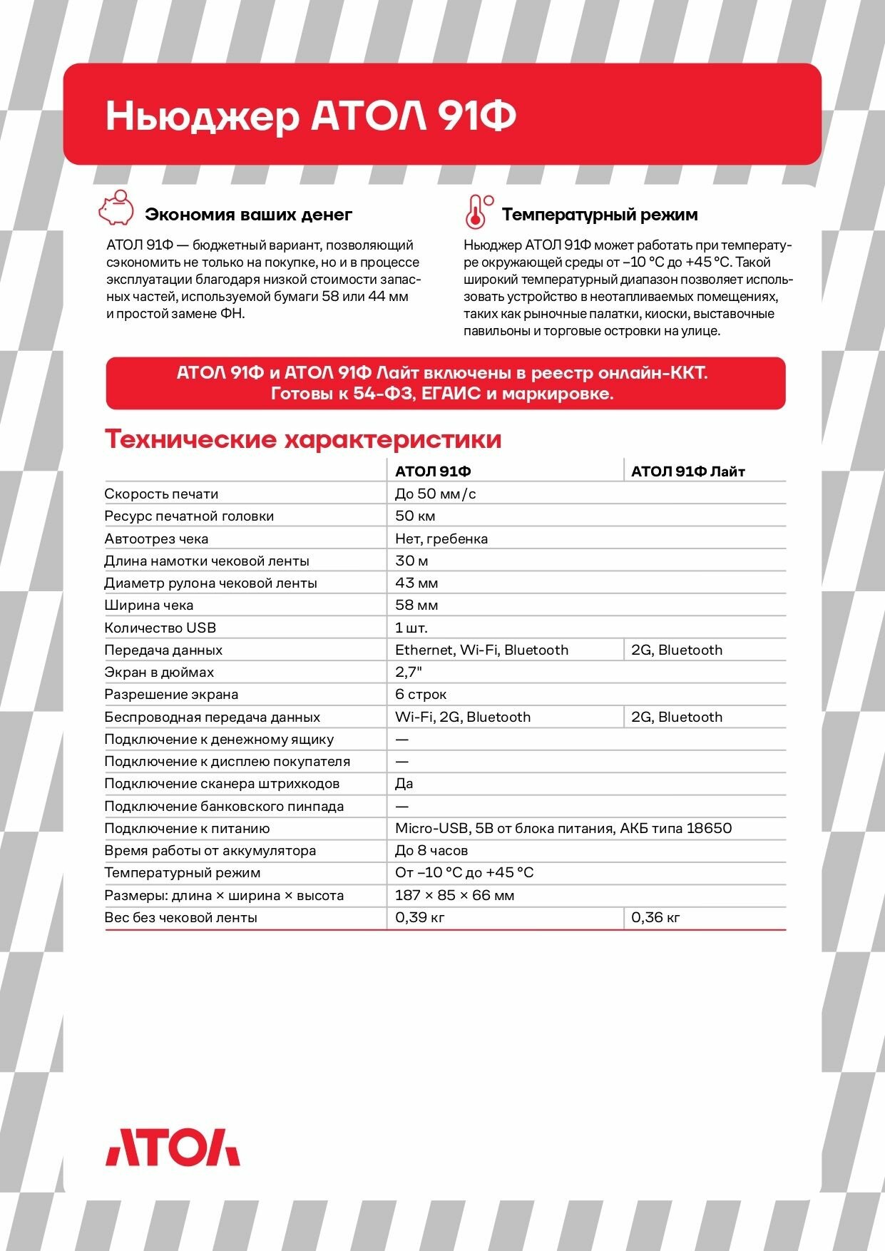 Контрольно-кассовый терминал АТОЛ 91Ф Lite. Серый. Без ФН. 2G. Bluetooth. 5.0 интересное: