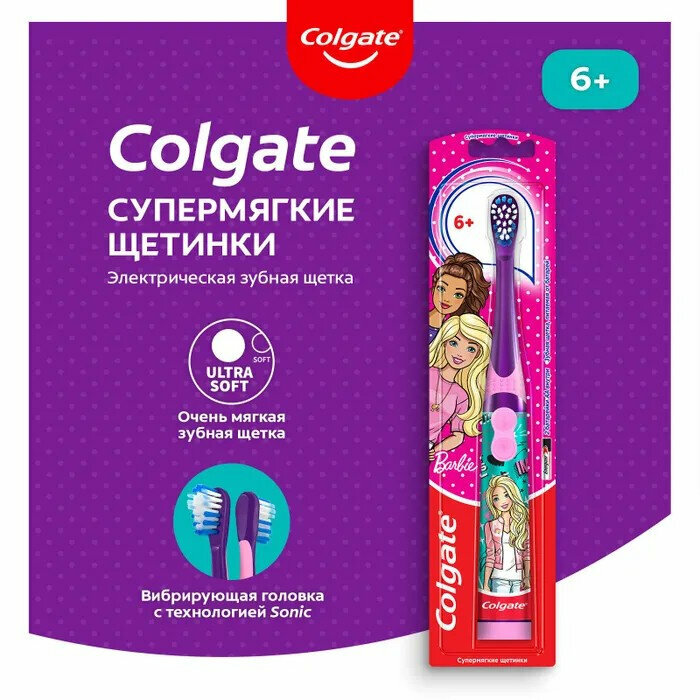 Colgate электрическая зубная щетка детская sonic barbie batman на батарейках