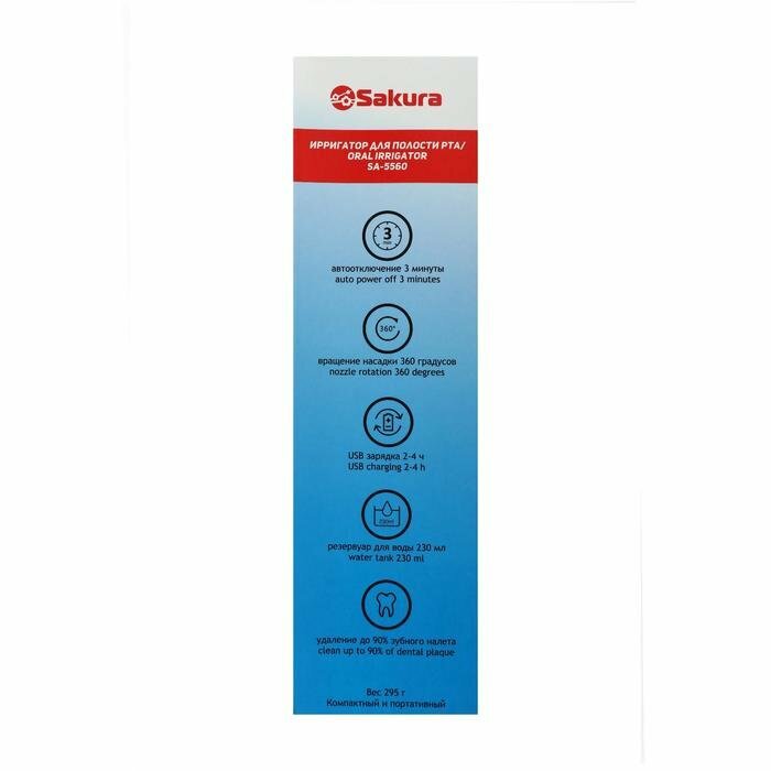 Ирригаторы SAKURA Ирригатор Sakura SA-5560, портативный, 230 мл, 3 режима, 1200 импульсов/мин, АКБ