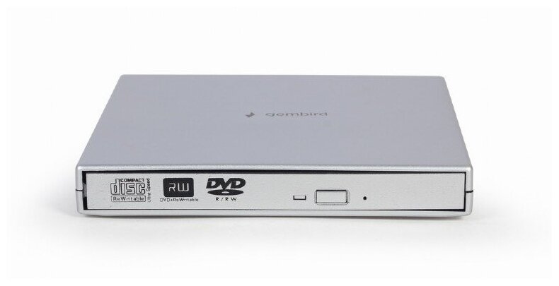 Внешний оптический привод Gembird DVD-USB-02 Silver RTL DVD-RW, внешний, USB 2.0, скорость записи CD: 24x, DVD: 8x, серебристый