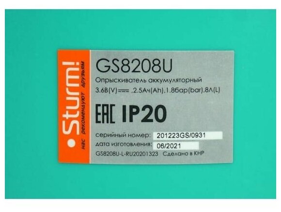 Опрыскиватель аккумуляторный STURM GS8208U 8 л