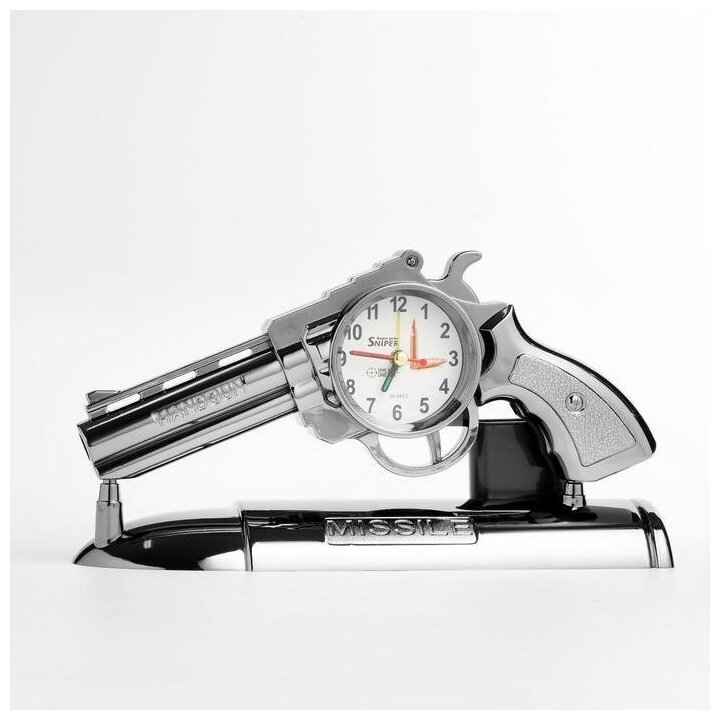 Часы-будильник "Пистолет", дискретный ход, d 7 см, 13 х 24 см интересное: