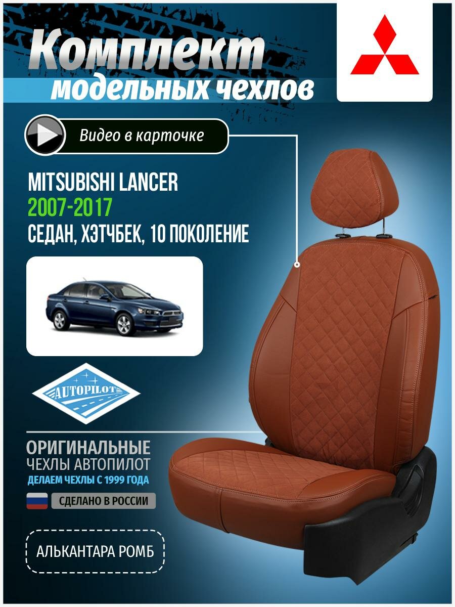 Купить Чехлы для Mitsubishi Lancer 10 2007-2017 Автопилот Коричневый Алькантара с ромбом mi-ln-lns-koko-ar