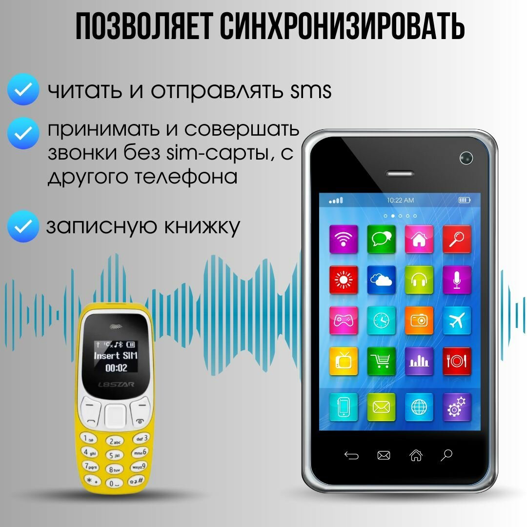 Купить Мобильный мини телефон BM10 L8star с изменениям голоса Желтый