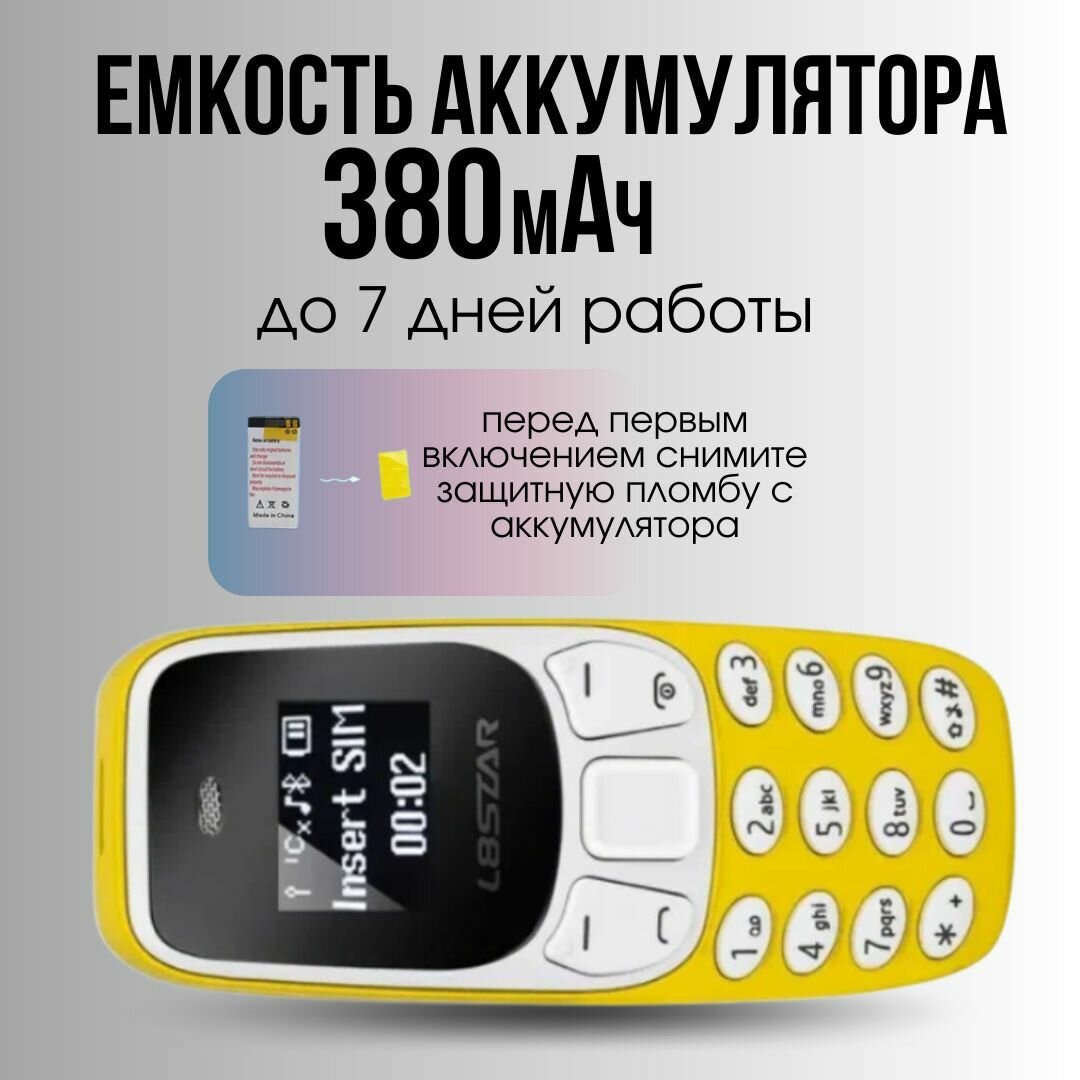 Карманный мини-телефон/ модный телефон /Мобильный телефон L8 STAR Мини/ BM10 с двумя сим картами Желтый