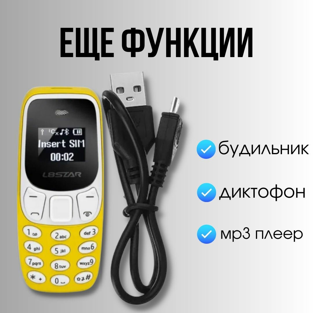 Самый маленький кнопочный телефон L8Star BM10 Желтый