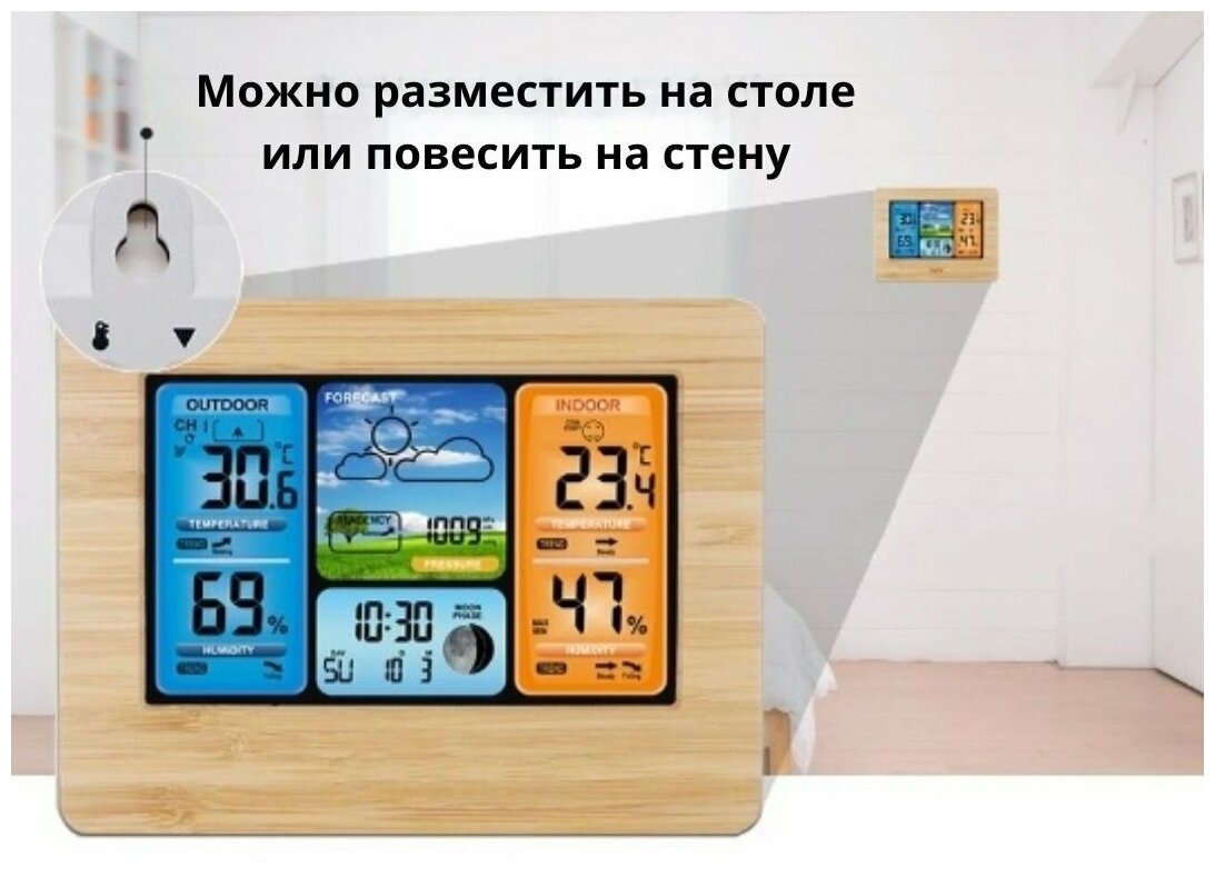 Ниже Вы можете прочитать отзывы на Метеостанция с прогнозом погоды и лунным календарем (+ внешний датчик) Дерево, ознакомится с подробными характеристиками, посмотреть интересные обзоры и фотографии на Метеостанция с прогнозом погоды и лунным календарем (+ внешний датчик) Дерево.